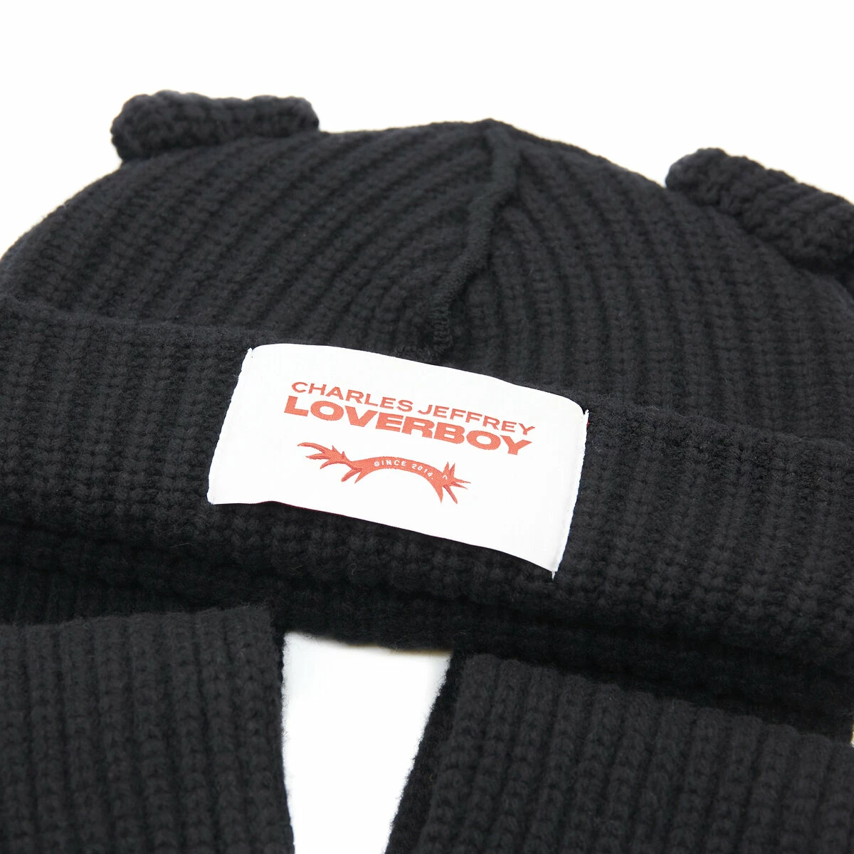 Extra Long Rabbit Ears Beanie in Black from the Charles Jeffrey LOVERBOY Collection.