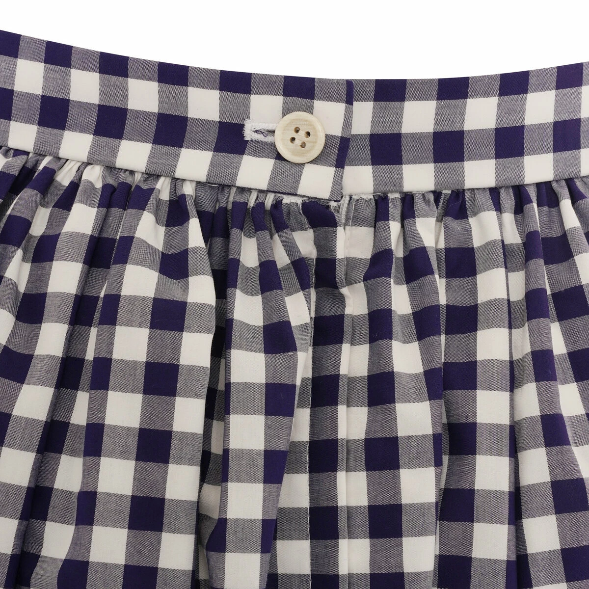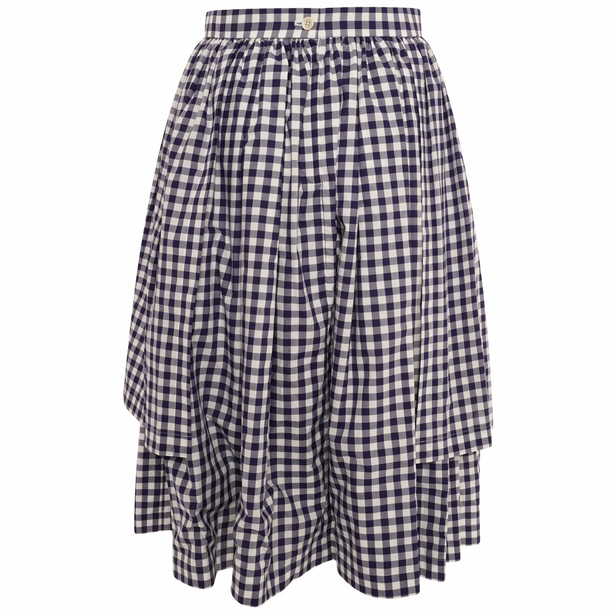 This navy gingham check-pattern skirt features a layered design, a high waist and a rear button fastening.