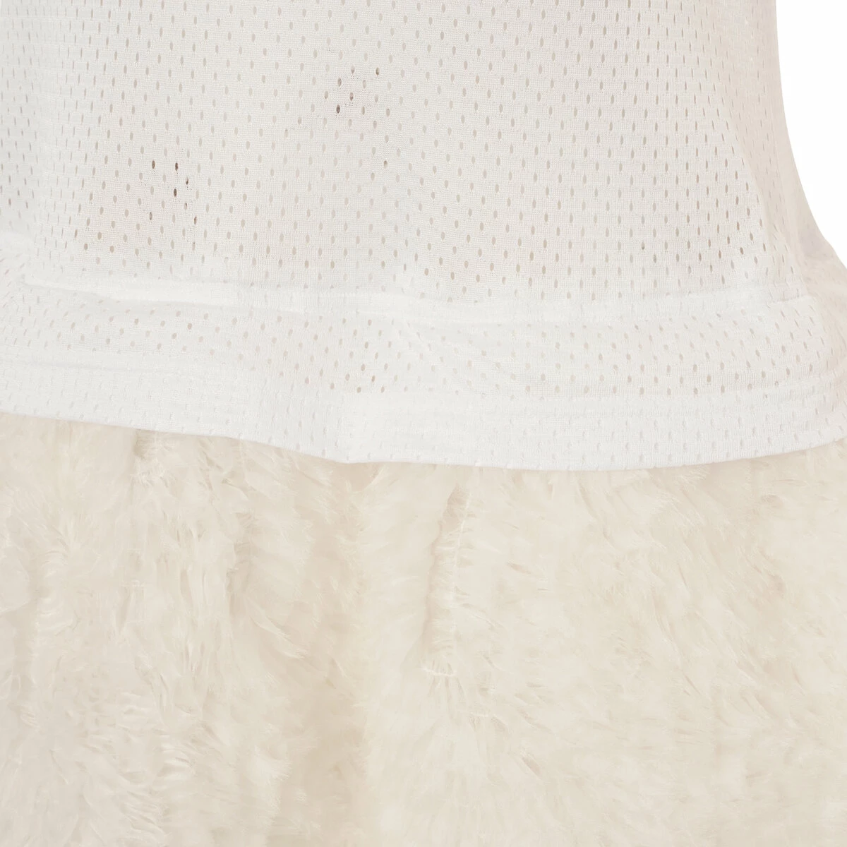 This sheer mesh dress is a chic and stylish addition to any wardrobe. The dress features a round neck, a ruffled skirt and is unlined for a light and breezy feel. This dress is both durable and comfortable.