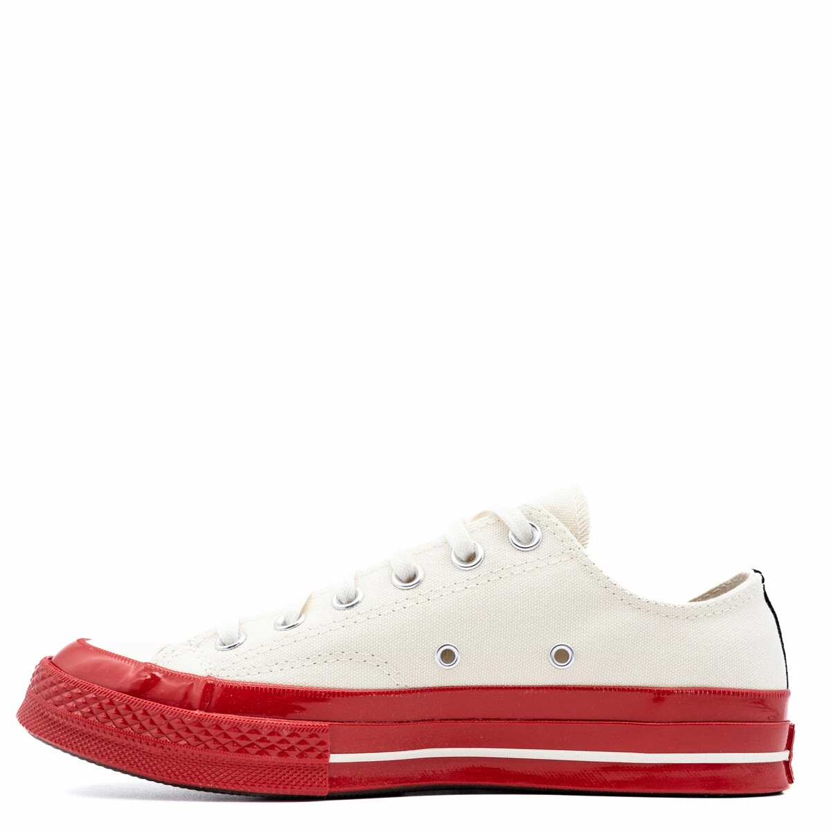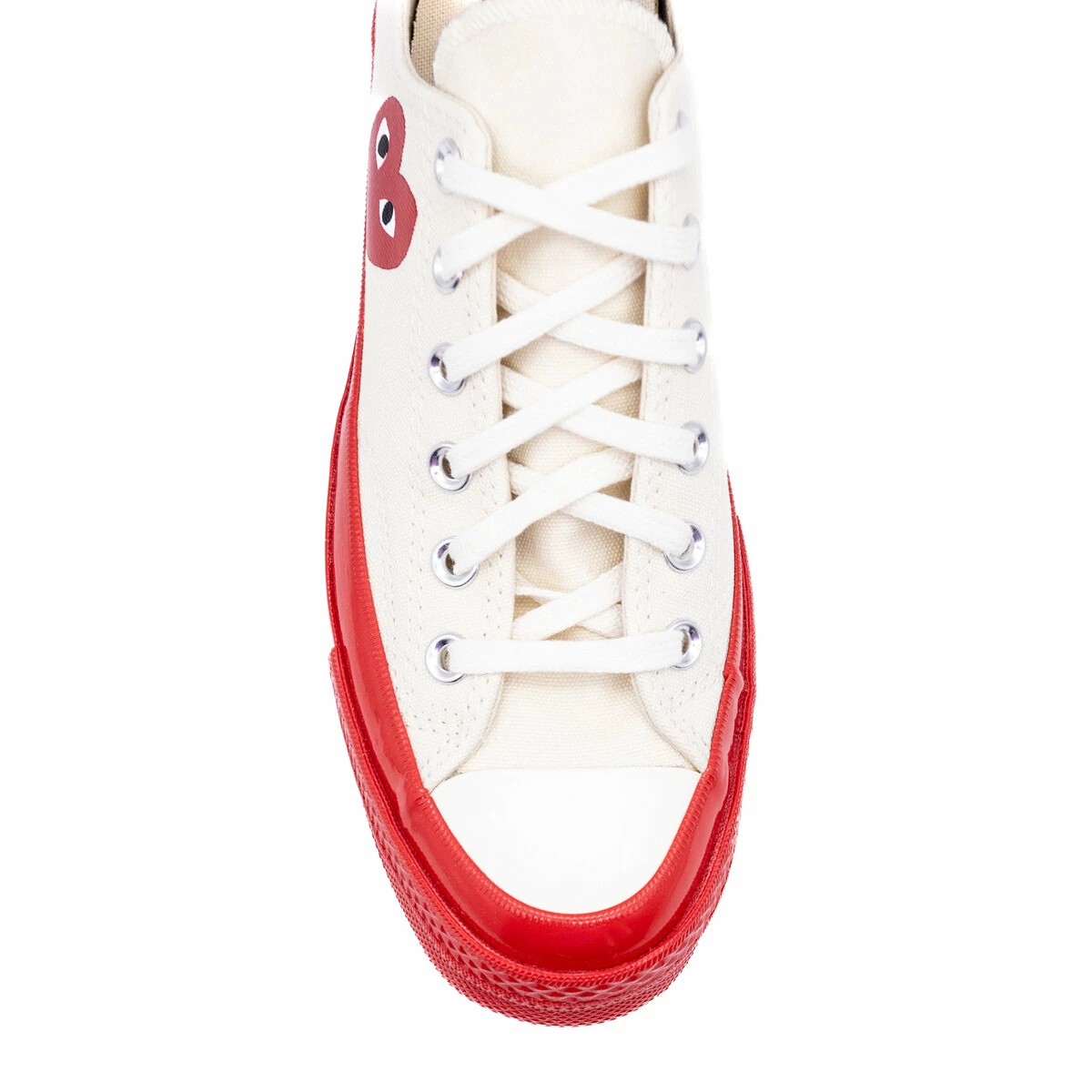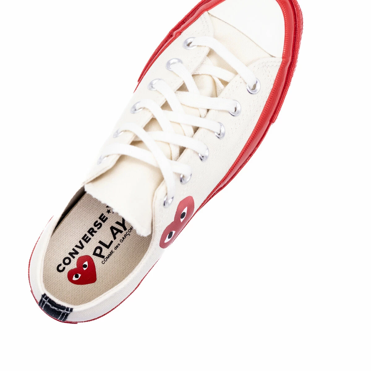 Converse Chuck Taylor Low in White with a Red Midsole from the Comme des Garçons PLAY Collection.