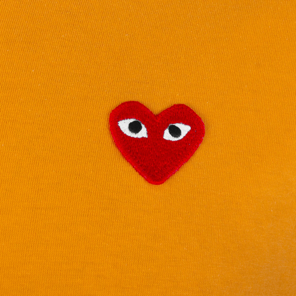Men’s Red Heart T-Shirt in Yellow from the Comme des Garçons PLAY Classic Collection. Comme des Garçons, or ‘like the boys’ in French, has pushed the blurred aesthetic of masculine and feminine motifs with playful overtones since it’s creation in 1969 by legendary designer Rei Kawakubo.