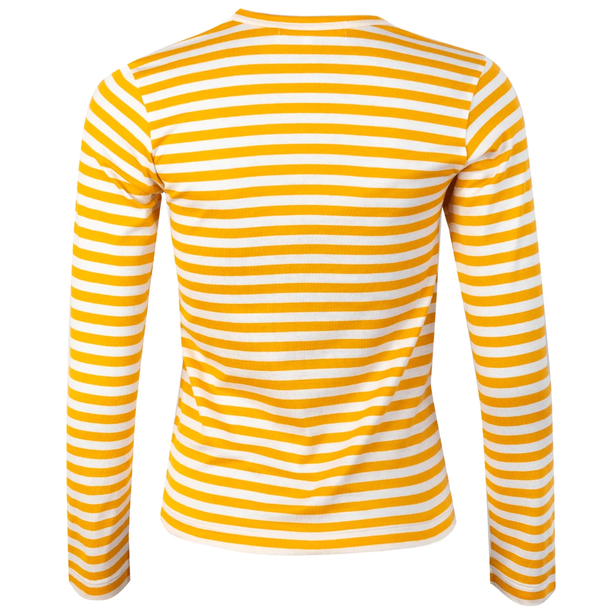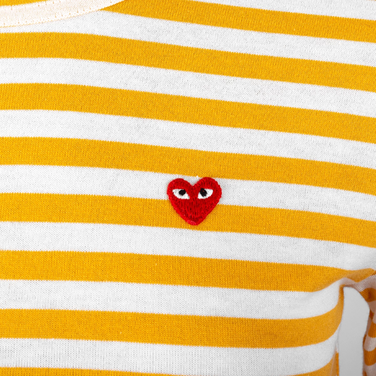 Women’s Red Heart Stripe T-Shirt in Yellow from the Comme des Garçons PLAY Classic Collection.