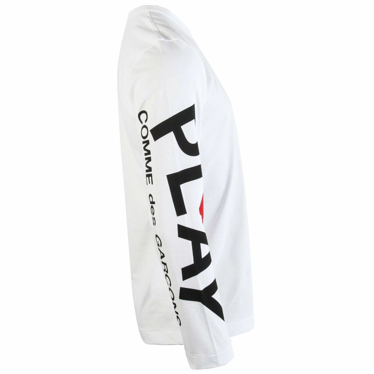 Men’s Single-Heart Sleeve Tee in White from the Comme des Garcons PLAY Collection.
