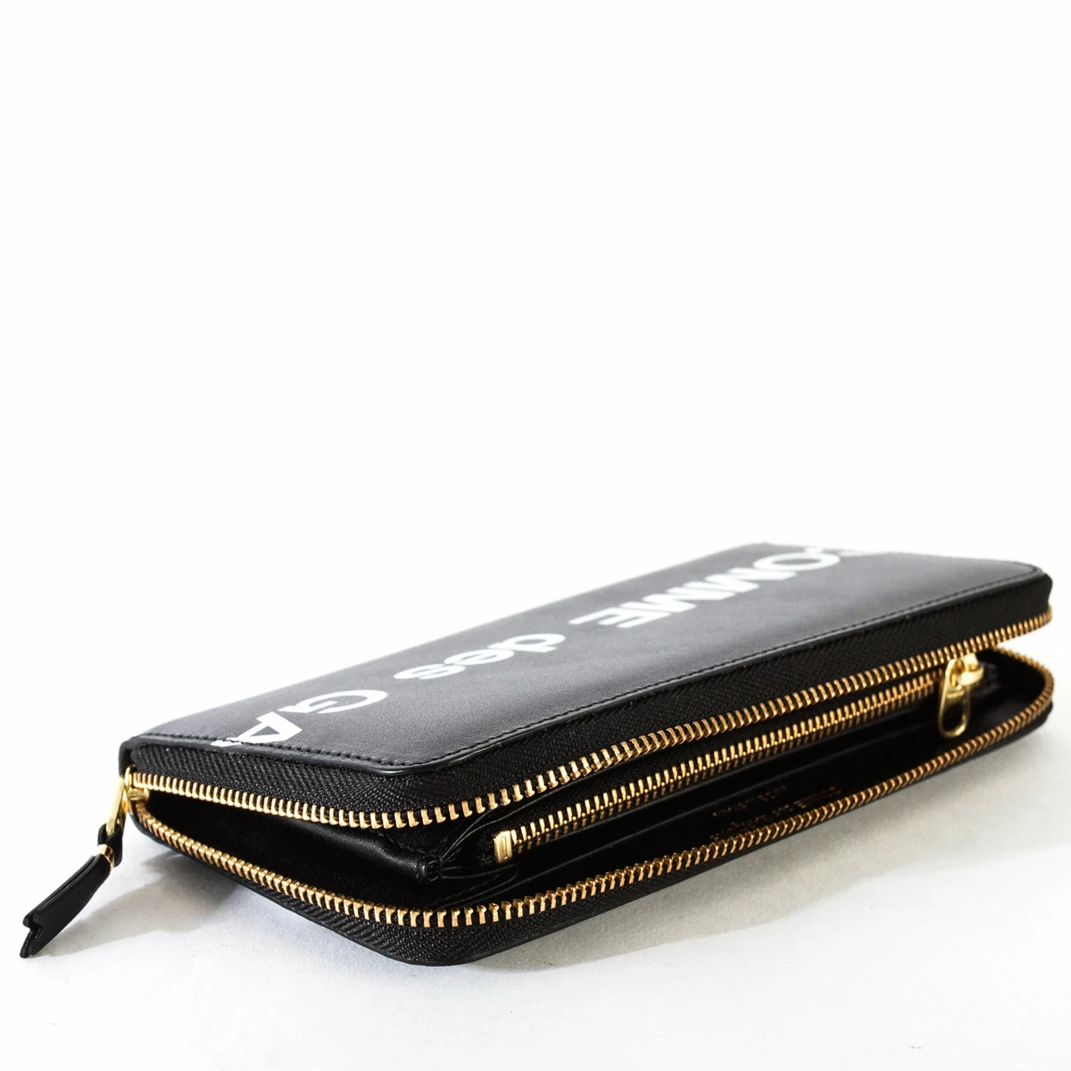 Huge Logo Wallet in Black from the Comme des Garçons Wallet collection. From humble beginnings in 1969, Japanese designer Rei Kawakubo has built Comme Des Garçons into a internationally renowned label that includes a WALLET line of luxury leather accessories.