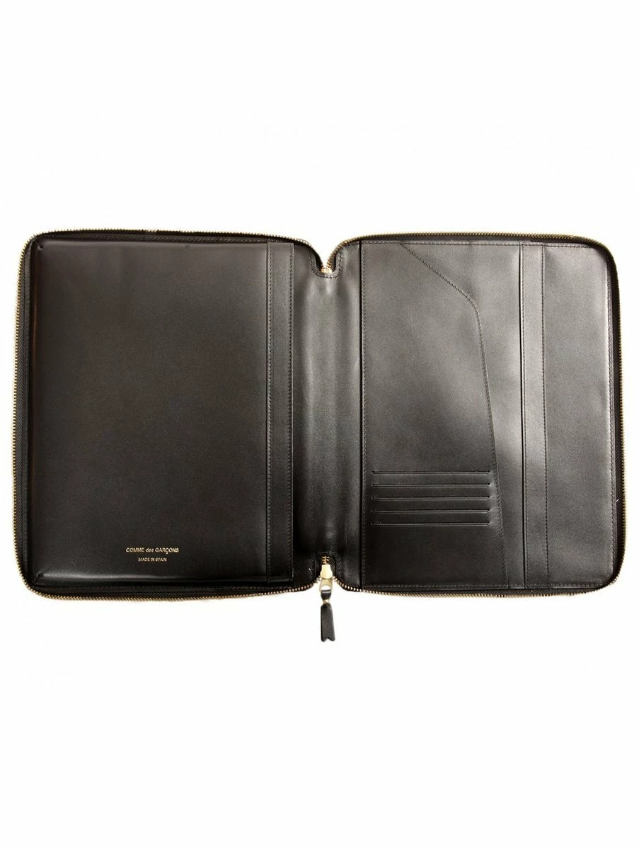 A large handcrafted leather iPad holder from Comme des Garçons which features a full zip fastening. Inside is a secure slot for your iPad and multiple openings for your documents and cards.