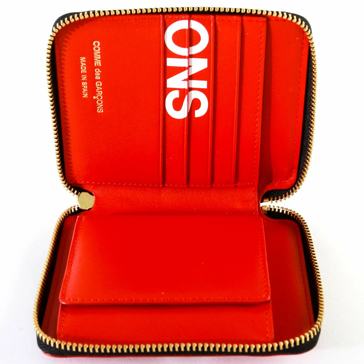 SA2100HL Huge Logo Wallet in Red from the Comme des Garçons Wallet Collection. From humble beginnings in 1969, Japanese designer Rei Kawakubo has built Comme des Garçons into an internationally renowned label that includes a WALLET line of luxury leather accessories.