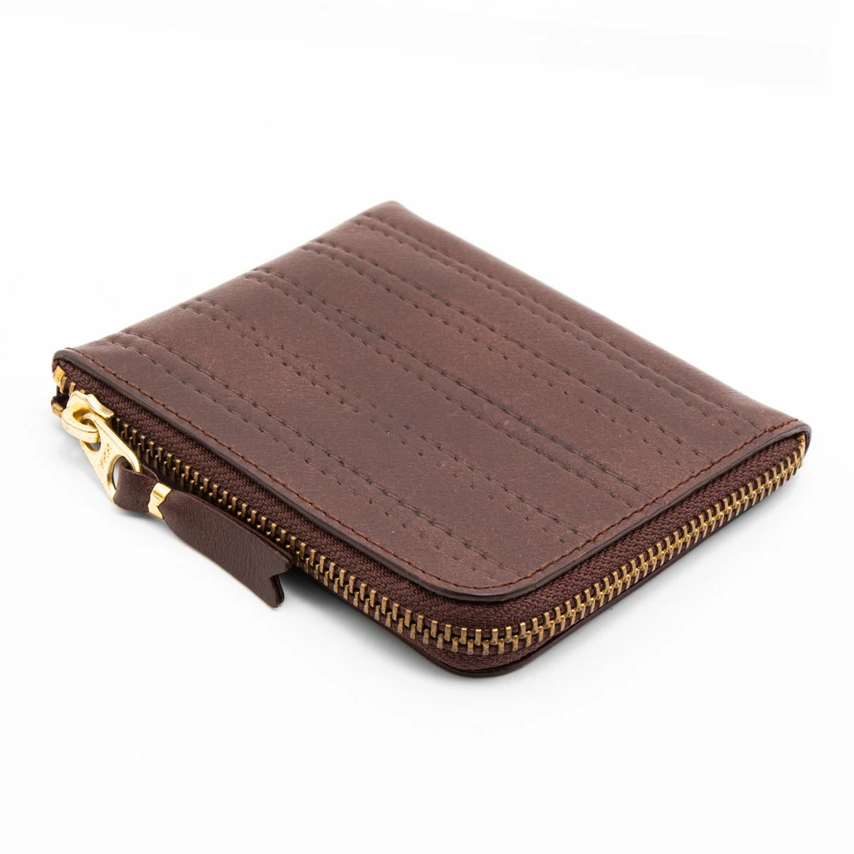 From humble beginnings in 1969, Japanese designer Rei Kawakubo has built Comme des Garçons into an internationally renowned label that includes a line of luxury leather accessories. This coin purse comes with all the exquisite detailing you would expect from Comme des Garçons, featuring embossed stitch detailing on both sides of the wallet and is finished with a statement metallic gold zip.