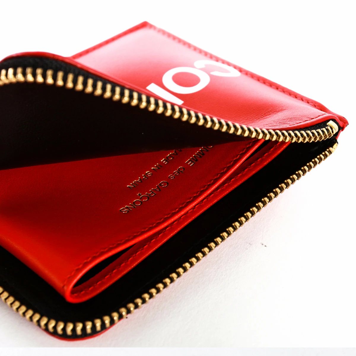 SA3100HL Huge Logo Wallet in Red from the Comme des Garçons WALLET collection. Made from 100% cowhide, this luxury wallet features a large logo print and opens with a gold-tone zipper to reveal space for credit cards and notes. The wallet also comes in a Comme des Garçons presentation box, making it an ideal gift. Like this? Shop the complete Comme des Garçons WALLET collection at Hervia.com