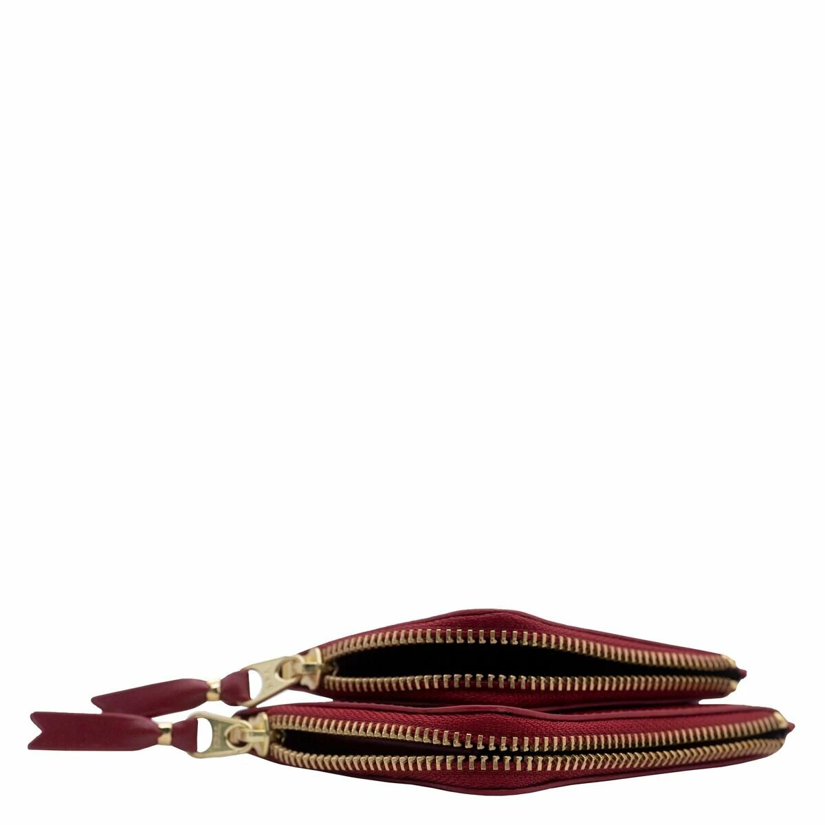 This wallet in a smooth, slightly matt leather finish, comes with two main corner zip compartments. The main one is featuring a coin pouch and two additional slots, whilst the smaller compartment is featuring one slot. This wallet also comes in a Comme des Garçons presentation box making it an ideal gift.