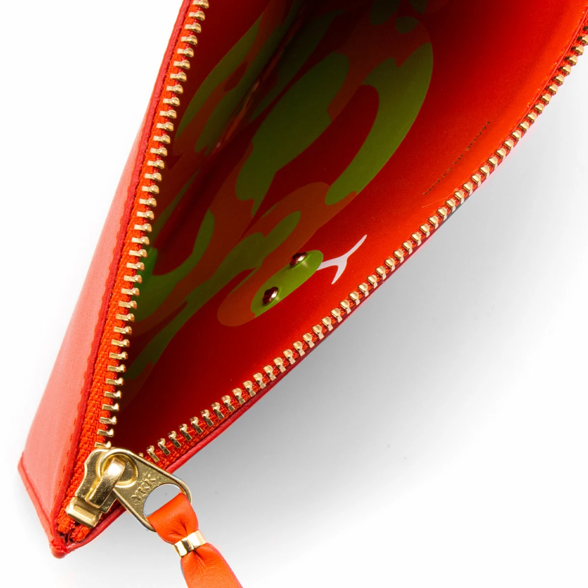 Opting for a bolder approach this season, the “Ruby Eyes” wallet from COMME des GARÇONS features a gold-tone zip closure and an eye-catching snake print that travels inside to reveal a embellishment snake eyes.
