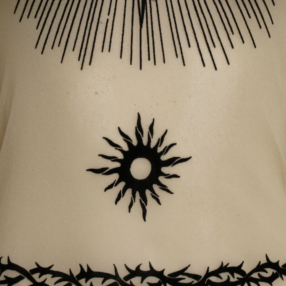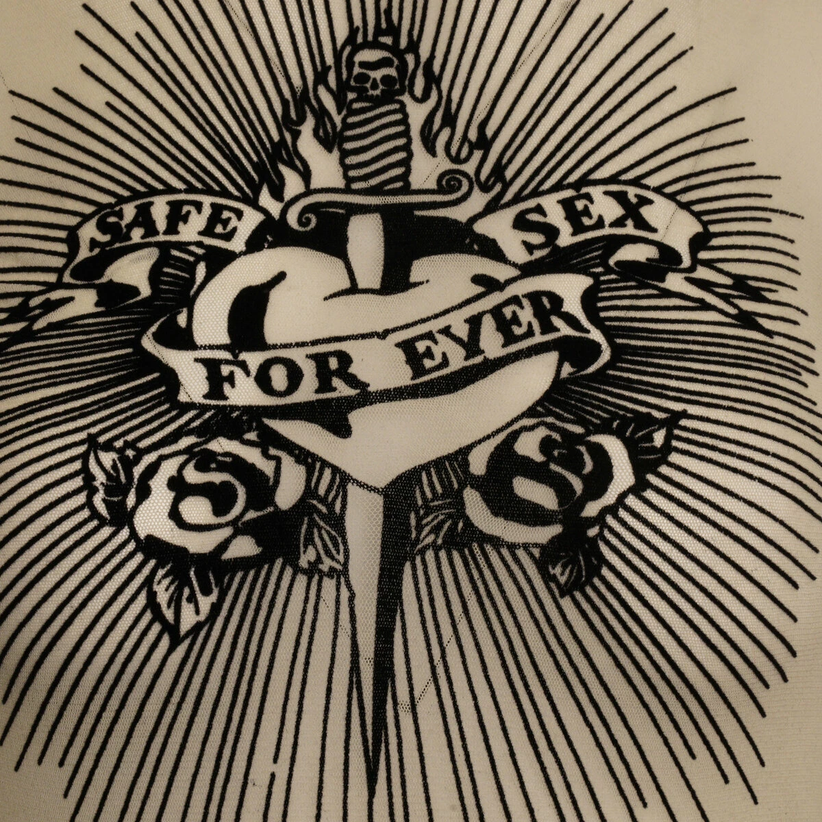The ‘Safe Sex’ Sheer Mesh Crewneck Top from the Jean Paul Gaultier collection.