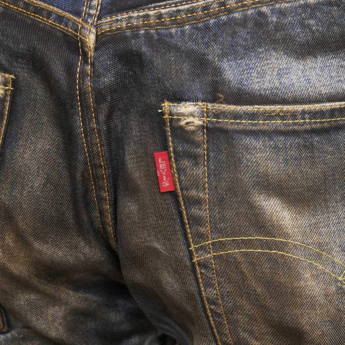 Men’s Relaxed Fit Cropped Jeans with Distressed Print from the Junya Watanabe MAN eYe x Levis Collection.