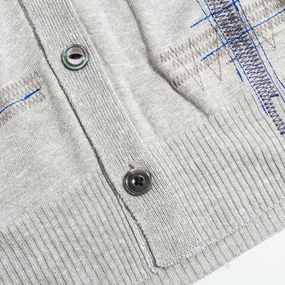 A classic style with an experimental approach from JUNYA WATANABE COMME des GARÇONS MAN, this linen cardigan features a V-neck, a front button fastening and contrast stitch detail.