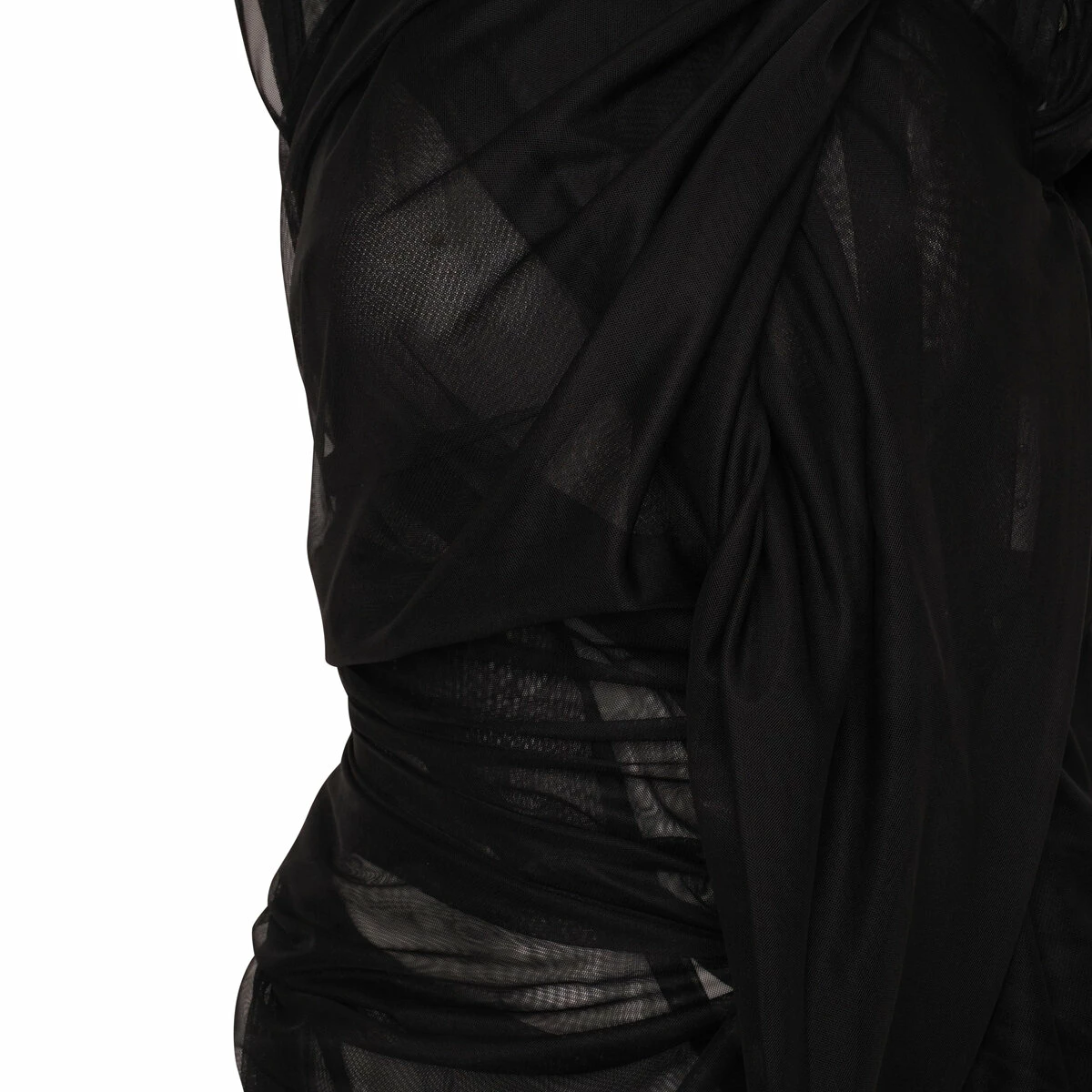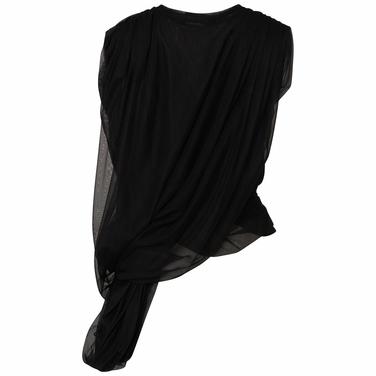 Junya Watanabe Women’s ruched detailing sleeveless top in black with a tulle trim.