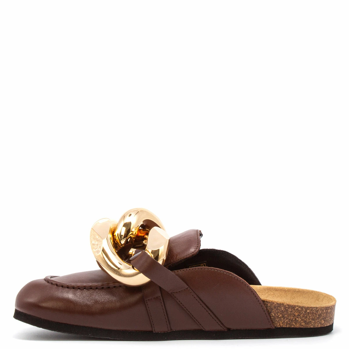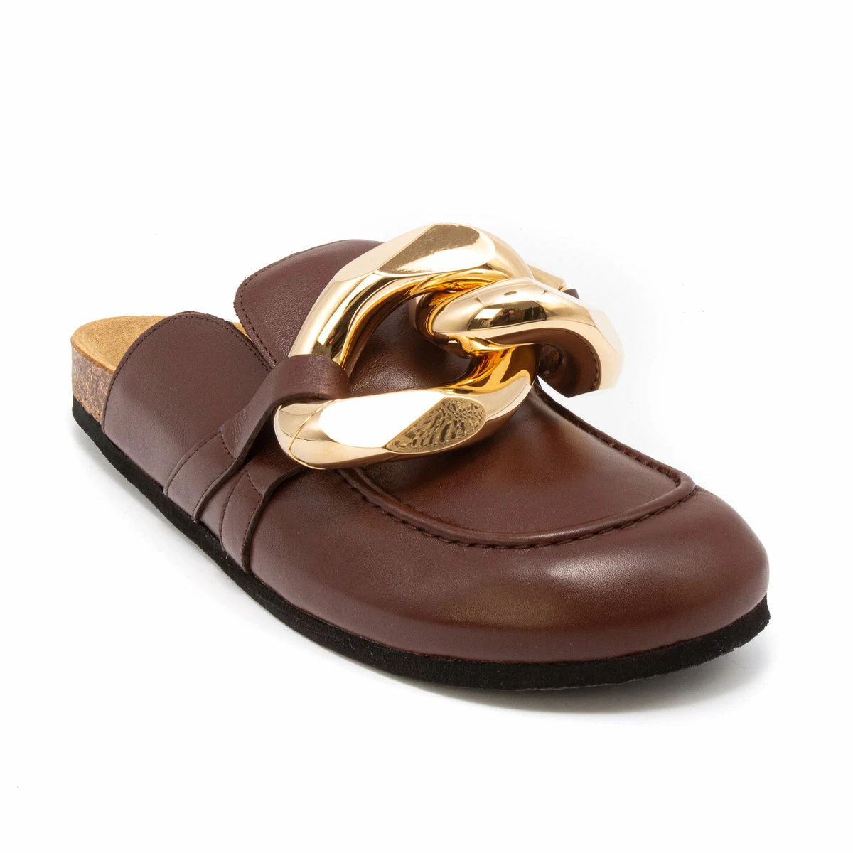 As seen in the Fall/Winter runway show, these chic leather mule loafers combine style and comfort and boast a leather upper, cork midsole, rubber outsole, and eye-catching chain detail.