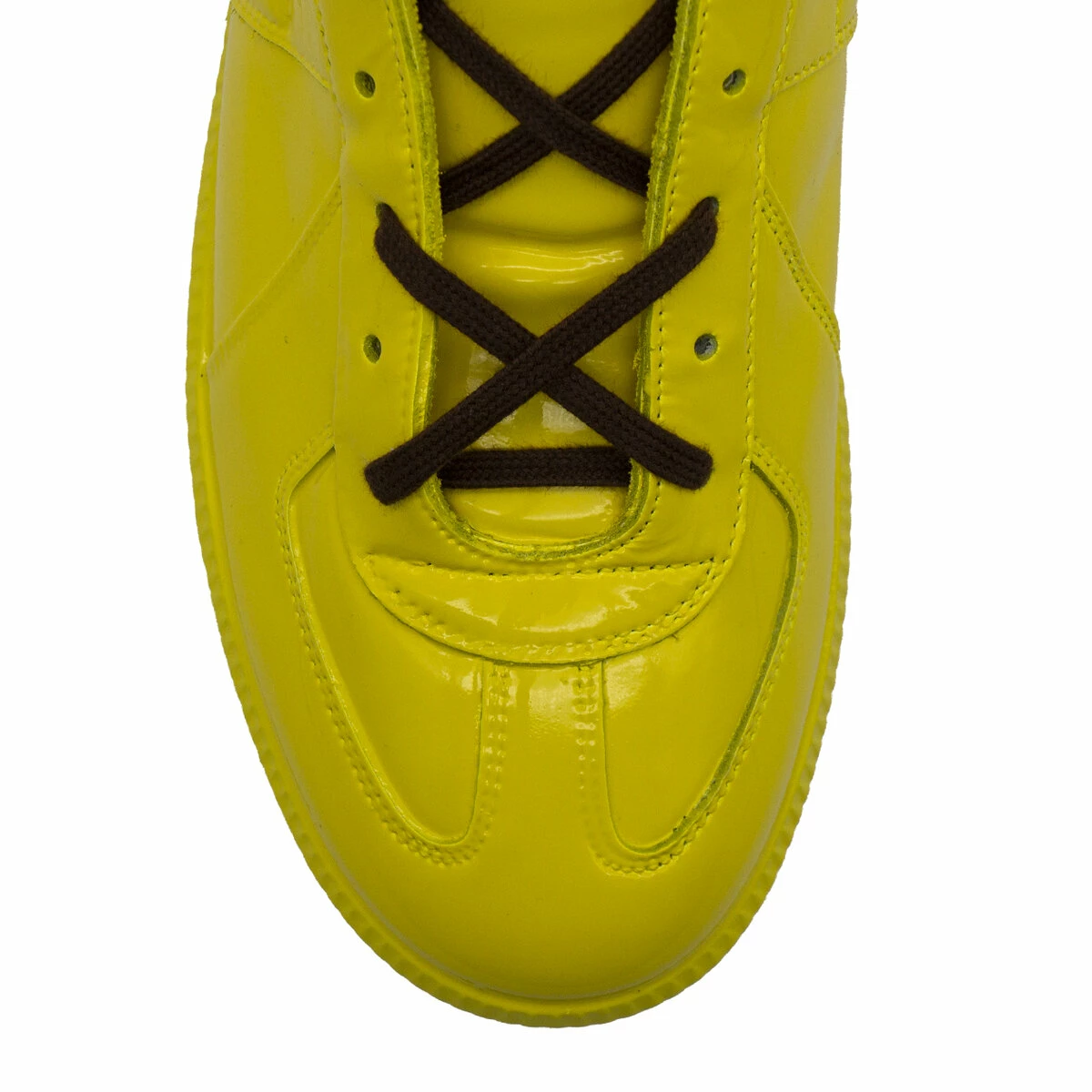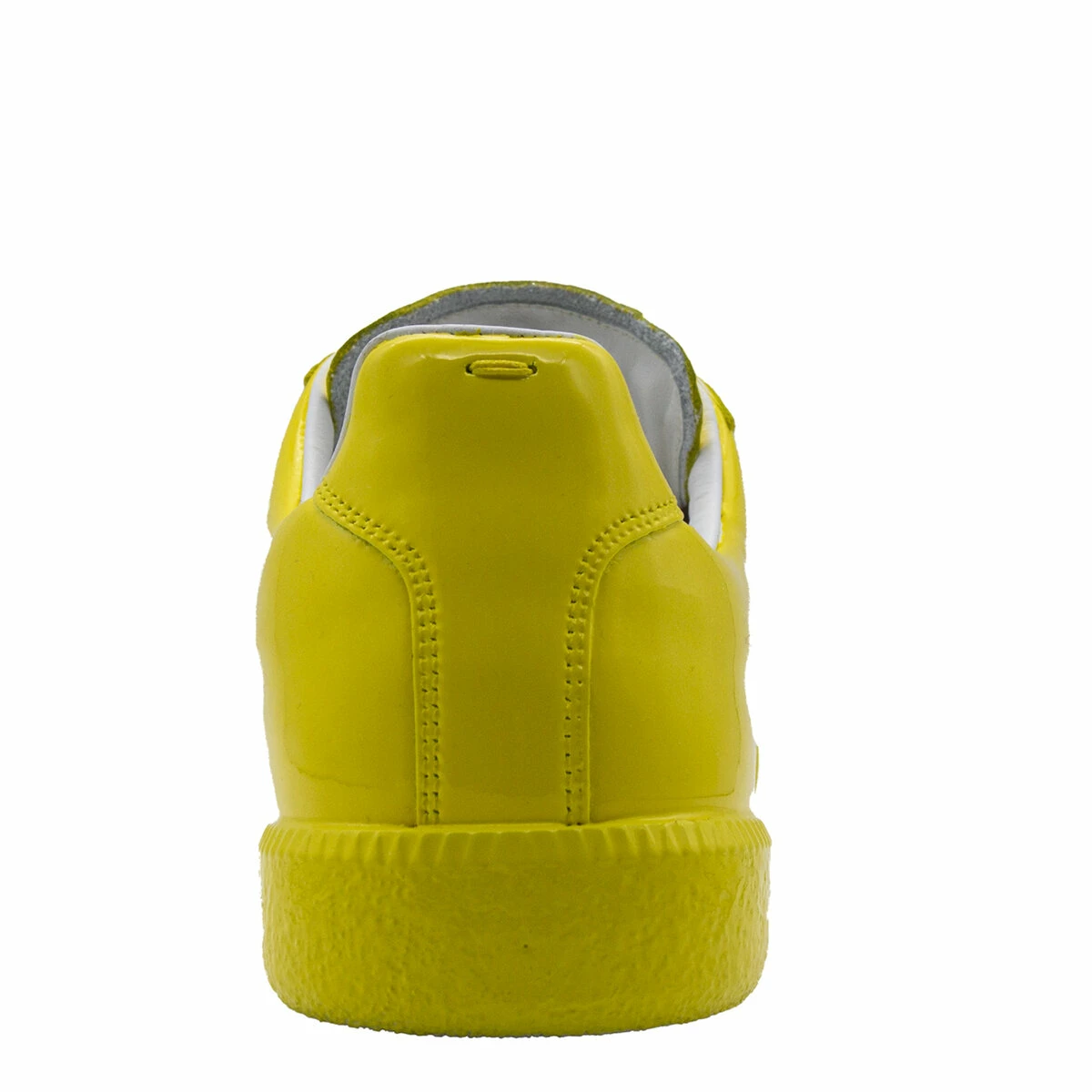 These classic sneakers combine vintage elements with sleek, modern design. These low-top sneakers feature rubberised leather, with Margiela’s logo patch on the tongue.