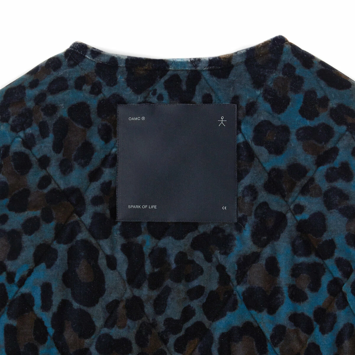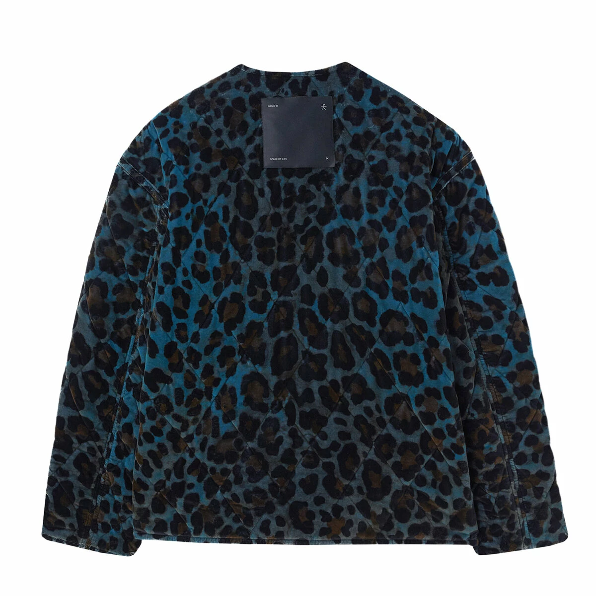 This button-up Combat Liner features a velvet Leopard print finish, padded and quilted lining and side seam pockets.
