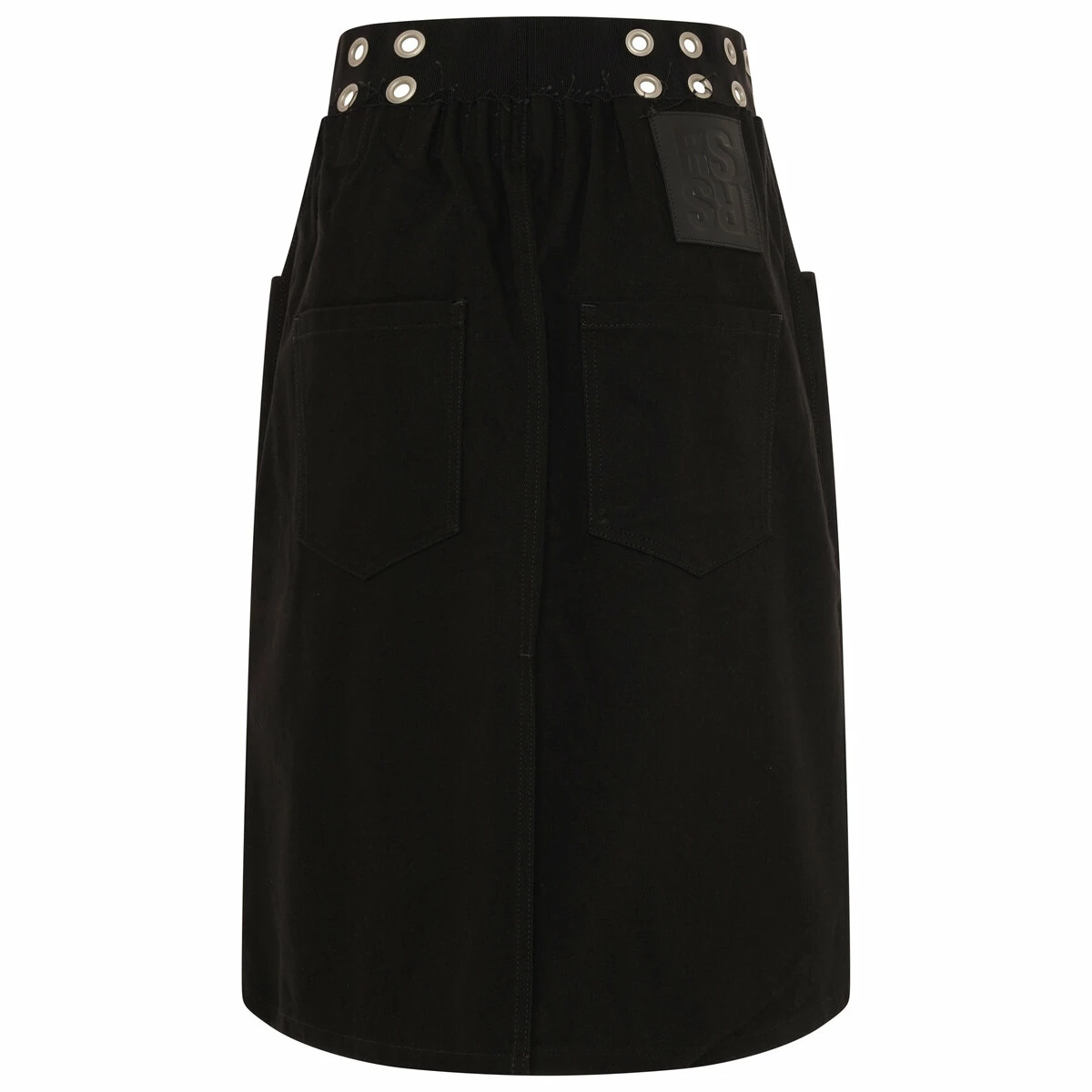 This knee-length Eyelets Denim Skirt from RAF SIMONS is crafted from cotton weaved denim. The fabric is straight cut at the hem with an eyelet waistband detail.