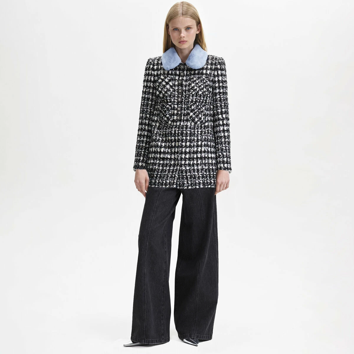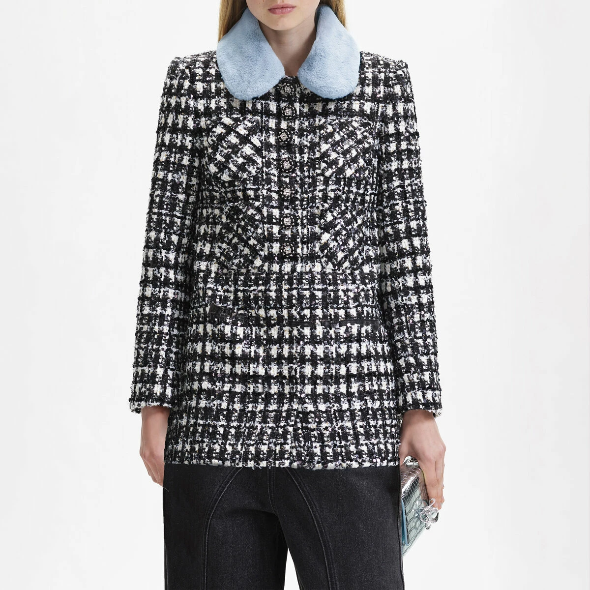 Boucle Check Faux Fur Collar Coat from the Self Portrait Collection.
