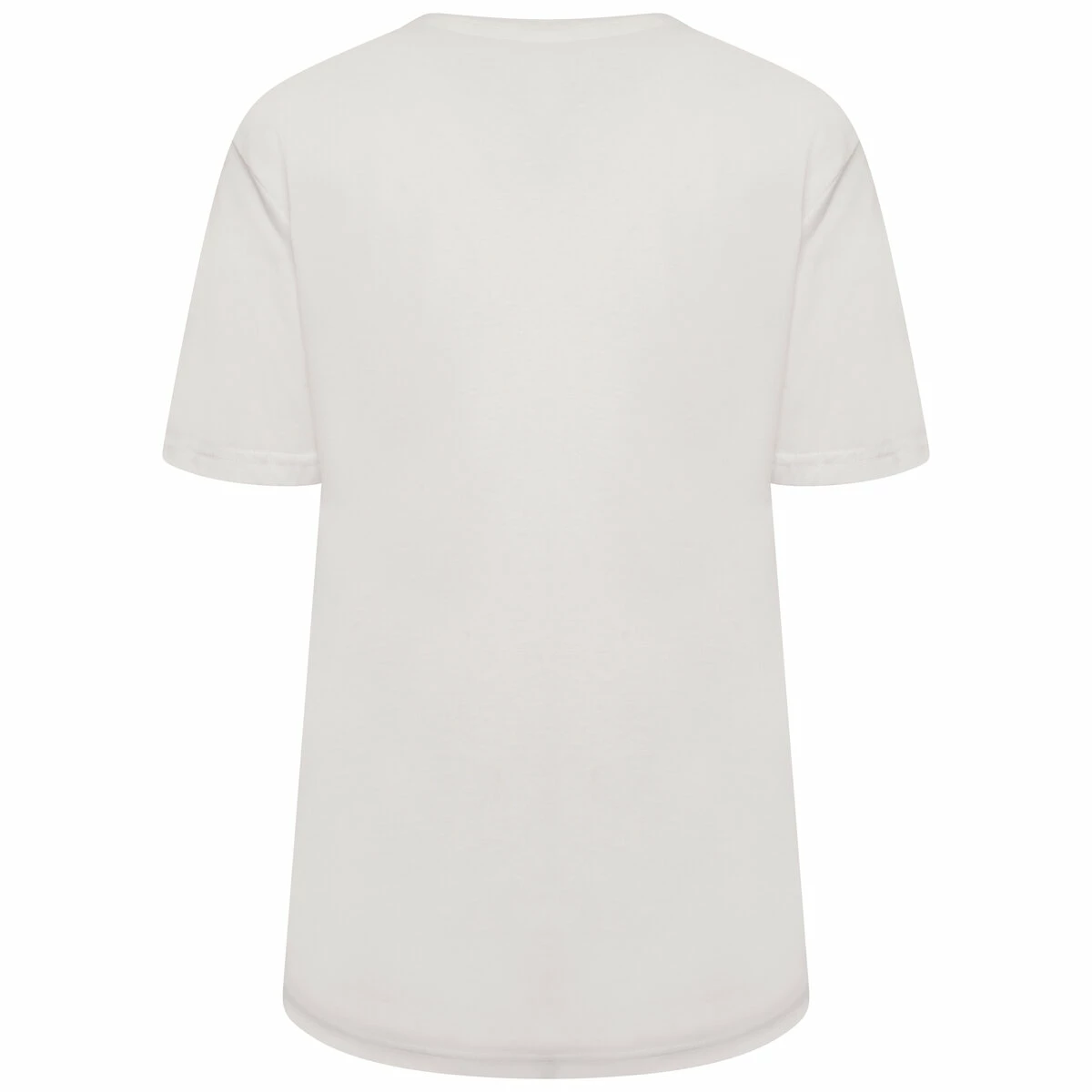 This white T-Shirt, made from an organic cotton, features classic straight boxy fit, a crewneck and an all-over writing in red.