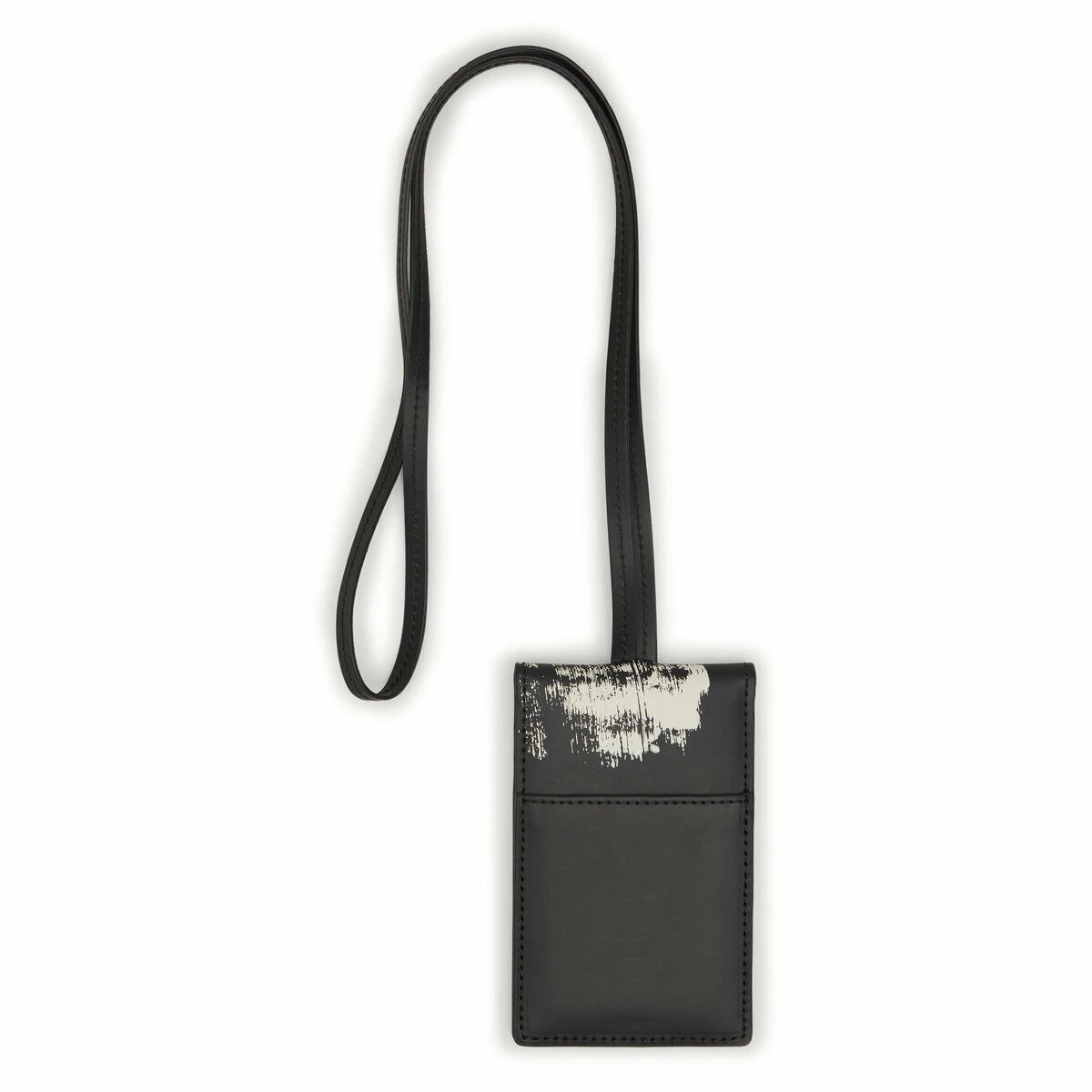 The Y-3 Graphic Lanyard features brushstroke graphics on the attached leather card holder. There are four card compartments on the inside, including one with a plastic window for your ID. An additional card compartment sits on the outside. A debossed Y-3 logo accents one side, and Yohji Yamamoto’s signature details the inside.