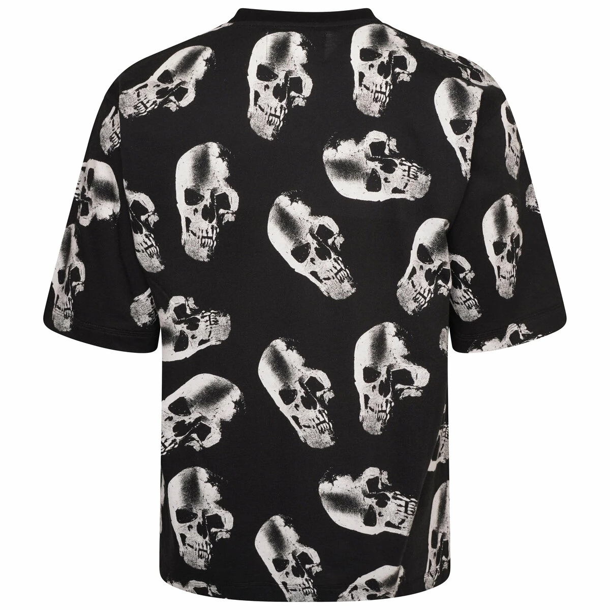 This T-Shirt features a black ribbed crew neck. Logo printed on the front. All-over printed skull graphics, soft fit and Unisex.